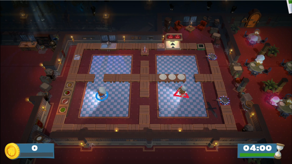4つある部屋の右下と左上、もしくは右上と左下に留まることで変形後それぞれのエリアに分かれることができます。常に違うエリアで作業することを基本に、ステージが動き始めたら声を掛け合って2人の場所を決めましょう。