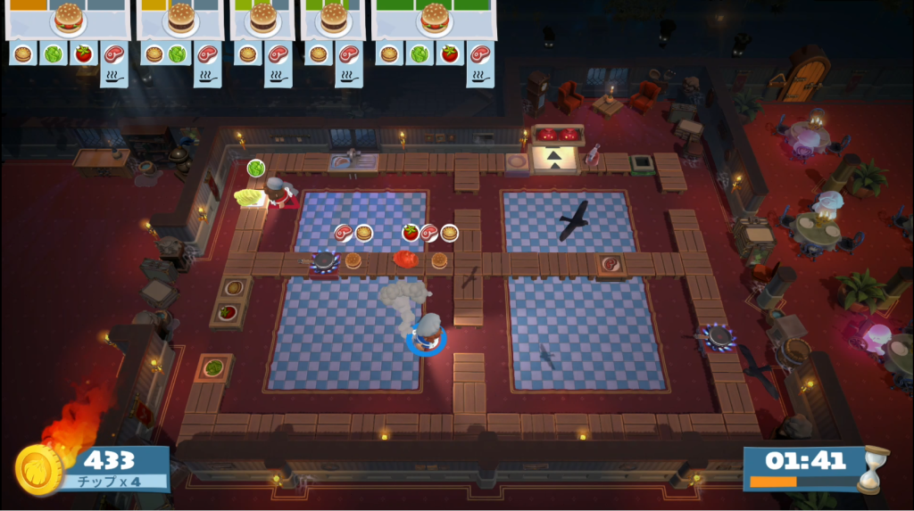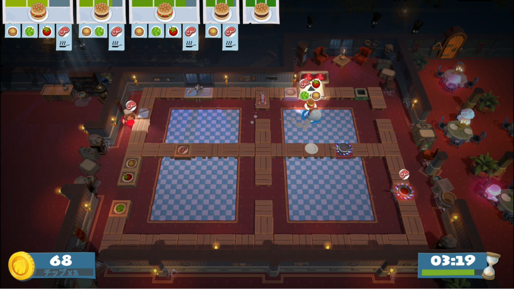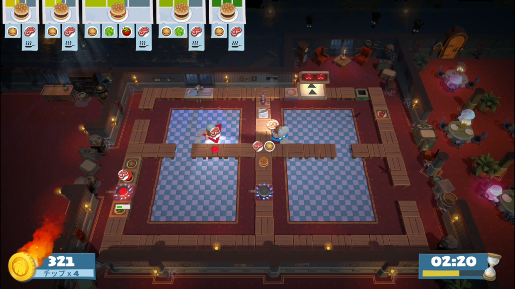 | 得点 | バンズ+牛肉 40点 バンズ+牛肉+レタス 60点 バンズ+牛肉+レタス+トマト 80点 |