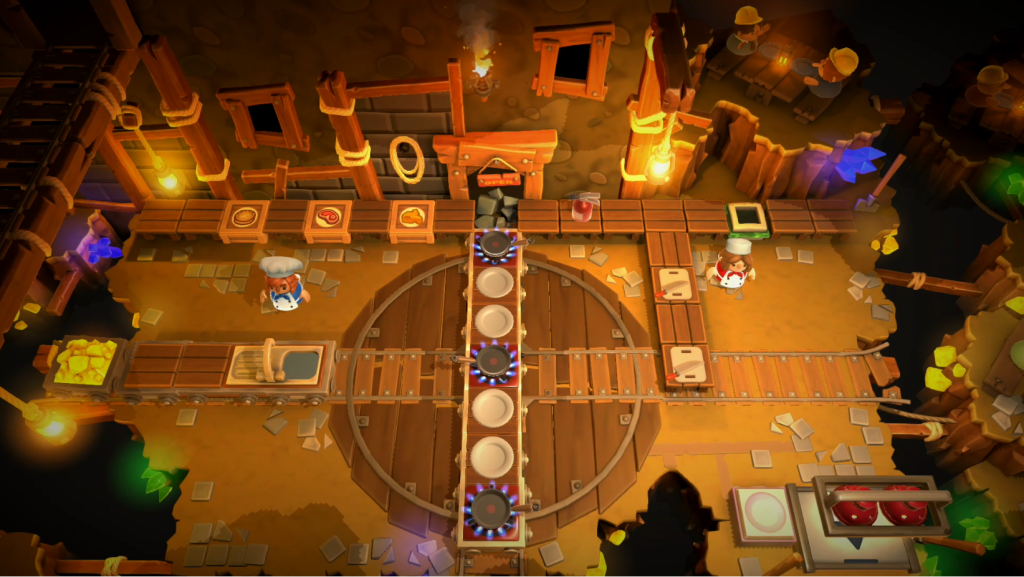 左のプレイヤーは洗いと品出し焼いた肉の処理(皿・バンズで迎える)を担当します。