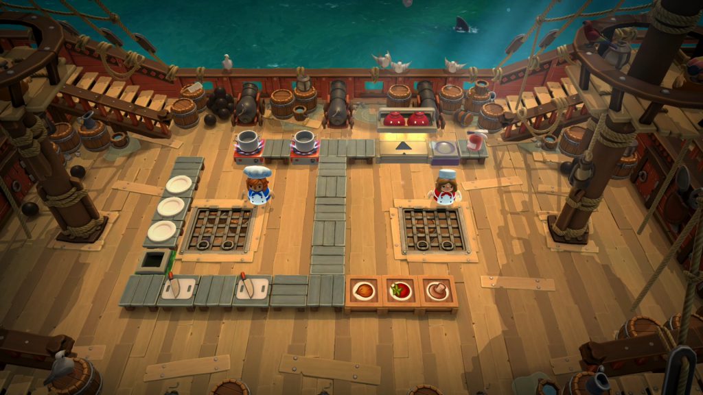 食材を取り出してまな板に置く&切るのを手伝う人とそれ以外の作業をする人にわけるのがいいかと思います。30秒~40秒経過ごとに中央の作業台が左右に動きますが、左の作業台に囲まれた人が右側に強制移動させられるパターンがありますのでその場合は役割を交替しましょう。